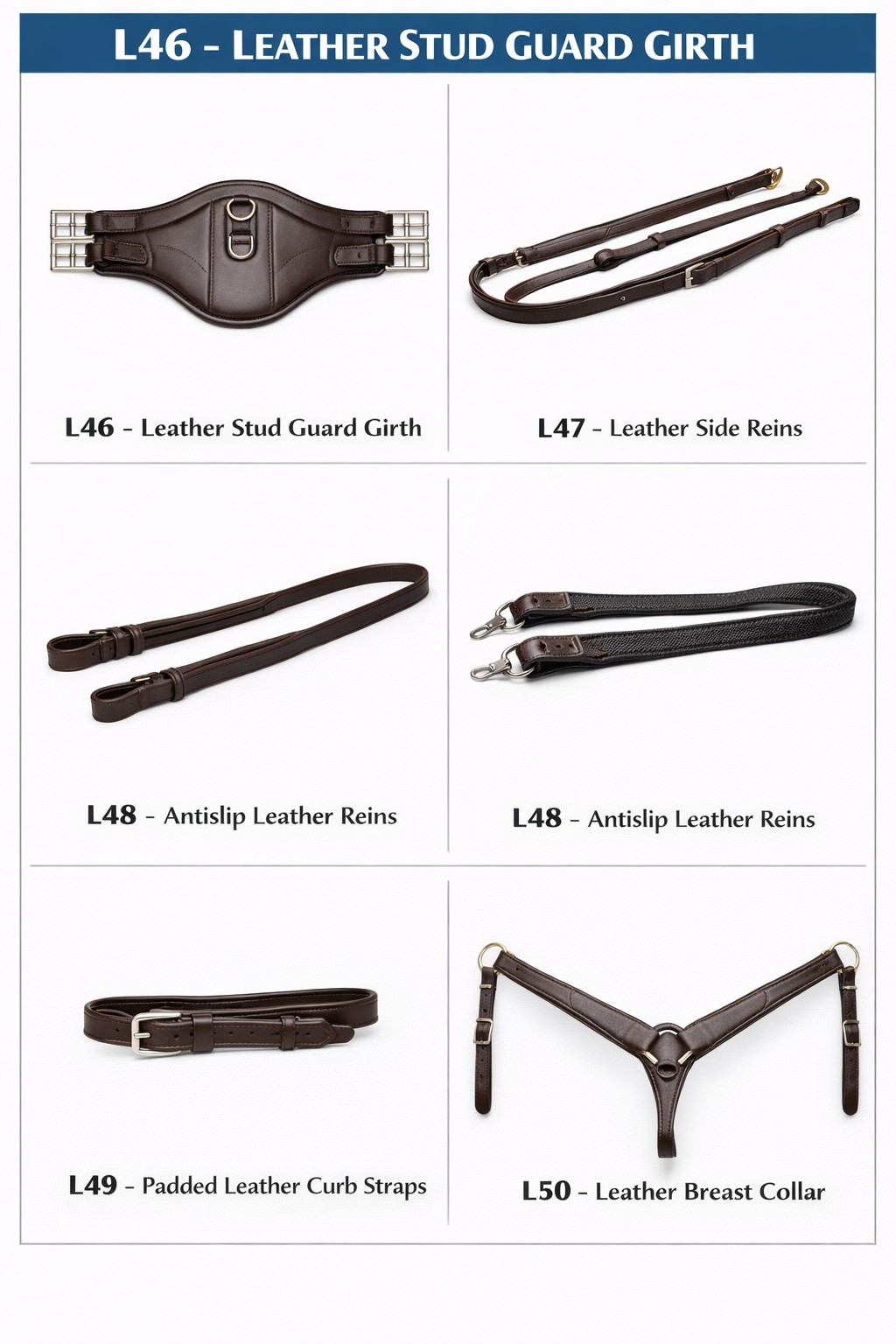 Our textile and leather accessory ranges are designed considering performance riding requirements, durability standards, and aesthetic branding demanded by international equestrian markets.